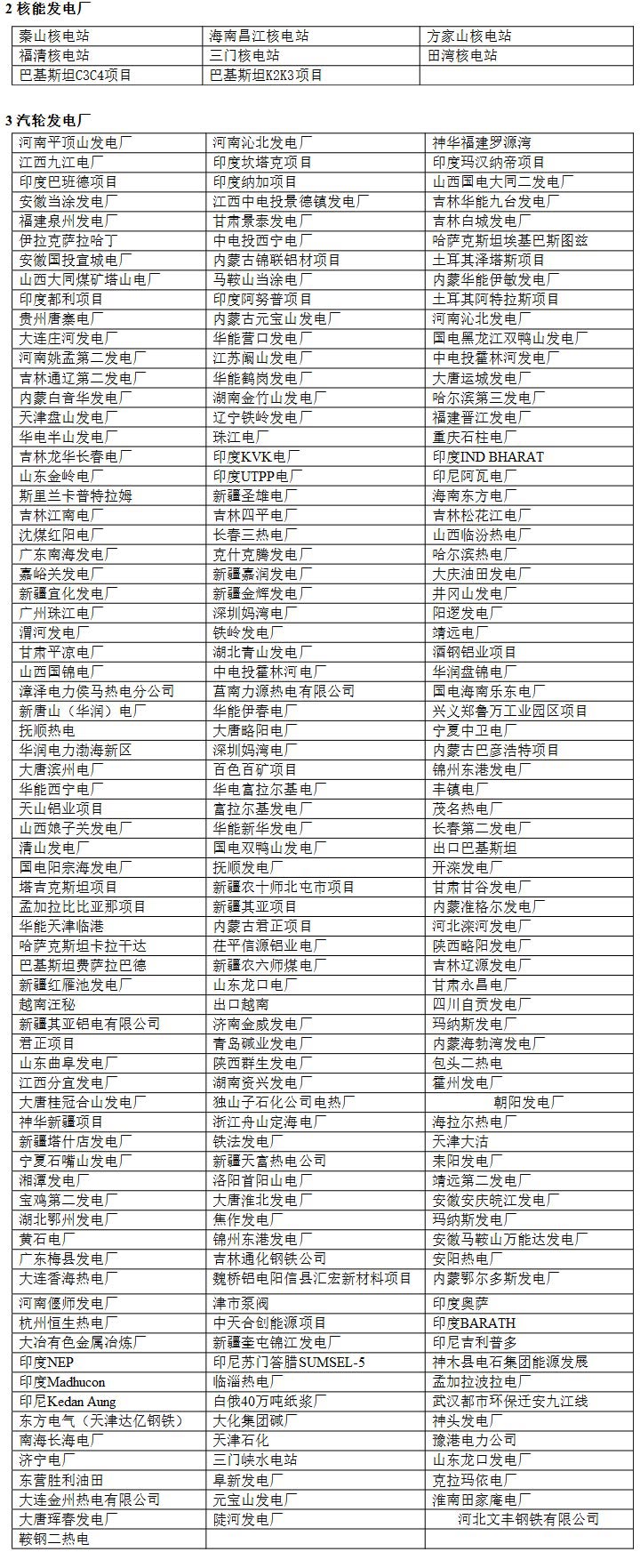 1、哈爾濱電機廠 2、 杭州發(fā)電設備廠 3、東方電機廠 4、北京重型電機廠 5、天津發(fā)電設備廠 6、東風電機廠 7、沈陽電機廠 8、西安西瑪電機廠 9、南京汽輪電機廠 10、 昆明電機廠 11、濟南生建電機廠 12、重慶水輪機廠